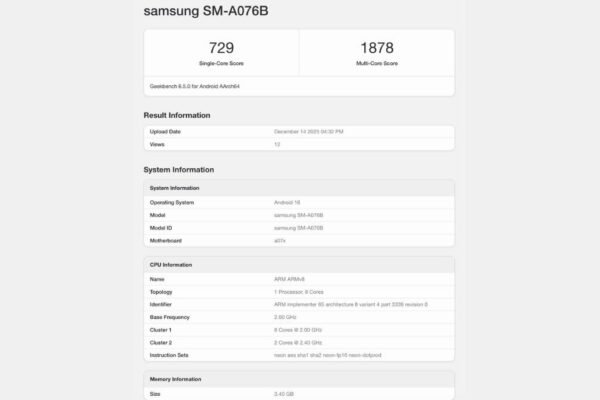 Samsung Galaxy A07 5G specs revealed via Geekbench listing