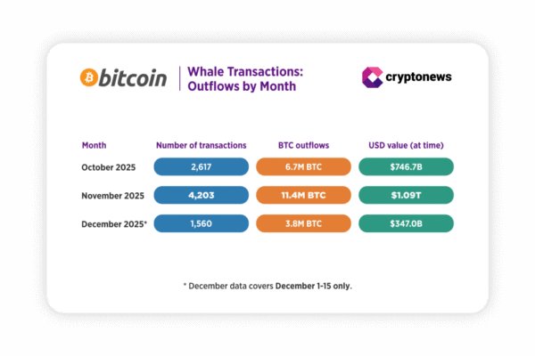 Key Takeaways: Large Bitcoin transactions above $20 million increasingly moved to exchange hot wallets between October and mid-December. Around 65%…