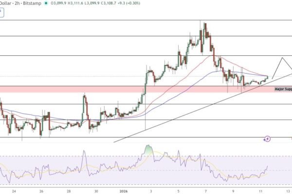 Ethereum is trading around $3,110, up roughly 0.5% over the past 24 hours, as price action settles into a tight…