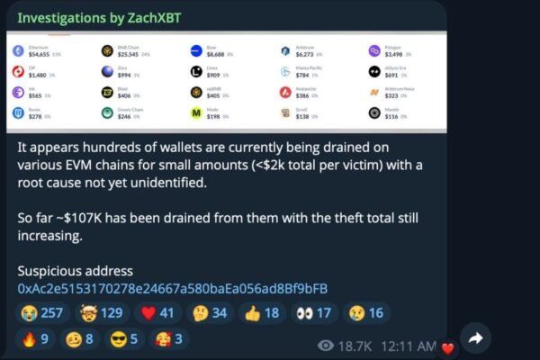 An active cross-chain exploit is draining hundreds of crypto wallets across multiple EVM-compatible blockchains, with losses exceeding $107,000 and climbing…