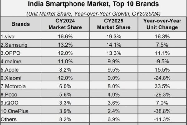 After a rocky start at the beginning of 2025, the Indian smartphone market recovered in mid-year and recorded a modest…