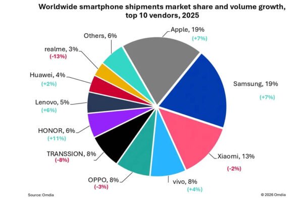 Omida has shared a report on the performance of the top ten smartphone makers in the 2025 global sales market…