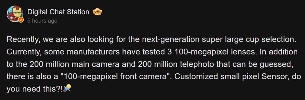 DigitalChatStation has noted that some phone makers are testing around three 100MP camera sensors. If true, this would be a significant change in the smartphone imaging world.