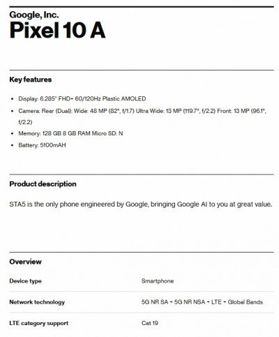 The Google Pixel 10a is expected to launch in early 2026, and we now have some additional specs thanks to a Verizon certification shared by Evan Blass. We already knew the 10a would look similar to its predecessor, but we now get confirmation that its core specs will also be identical.