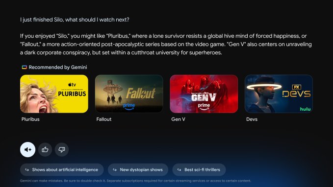 Google believes AI can improve the TV-watching experience, which is why it brought its Gemini AI to Google TV devices in November. At the Consumer Electronics Show (CES 2026) in Las Vegas, the company is now showing off a series of new Gemini features that will soon arrive on the TV, making it possible for viewers to deep dive into topics, search for and “reimagine” their personal photos and videos with AI, and, perhaps best of all, tell the TV what to do instead of having to navigate through complicated settings.