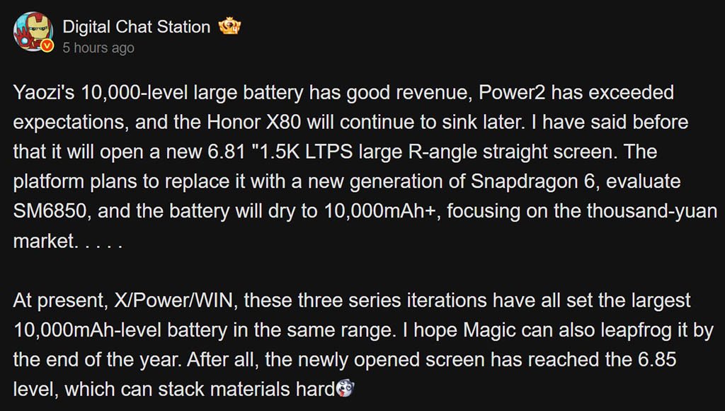The X80 phone may use a new-gen Snapdragon 6 chipset with a price tag of 1000 yuan. At the same time, the tipster predicted seeing a large flat screen panel with the Magic 9 series with a battery exceeding 9000mAh capacity.