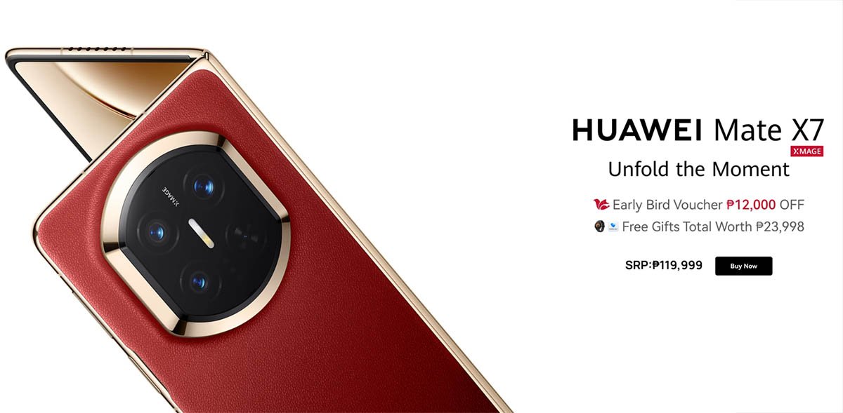 Offer: Mate X7 is open for an early bird deal with a ₱12,000 voucher. It is bringing freebies worth ₱23998, which includes a Watch GT 5 46mm and a 1-year 1-time accidental screen damage service. The device costs ₱119,999 or ₱4999.96 per installment.