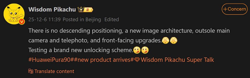 SmartPikachu revealed that Huawei is working on a new imaging structure for the Pura 90 series with a redefined selfie camera. The company has some interesting upgrades in terms of the main camera and the telephoto zoom lens.