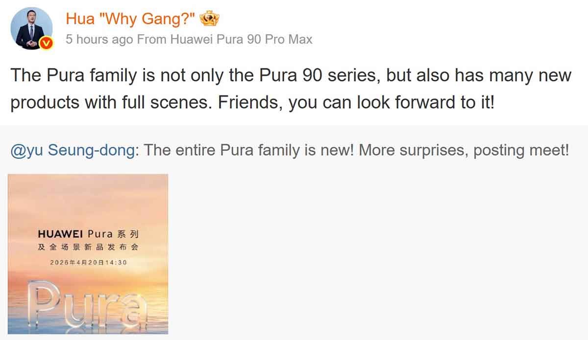 Huawei will unveil the Pura 90 series on April 20, along with a new foldable device.