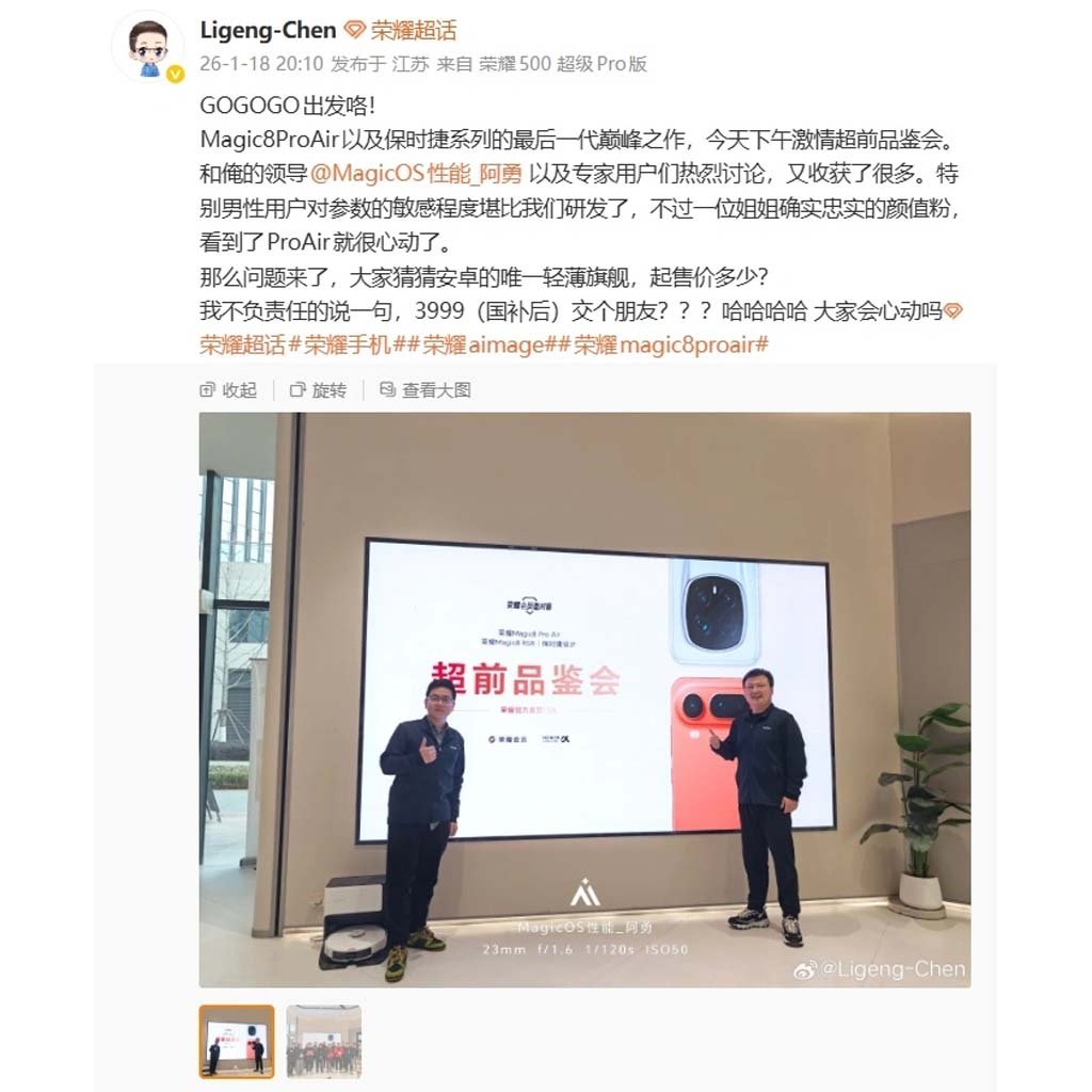 Chen Ligeng, one of the performance development engineers at Honor has shared a post on Weibo. He talked about the new products launched at the Magic Air event.