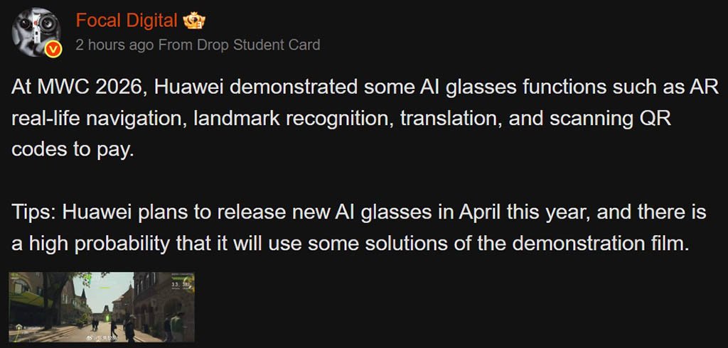 The tipster said Huawei has demonstrated a few AI Eyewear features at MWC 2026. Some of these have even leaked earlier, giving an advanced glimpse of the device.