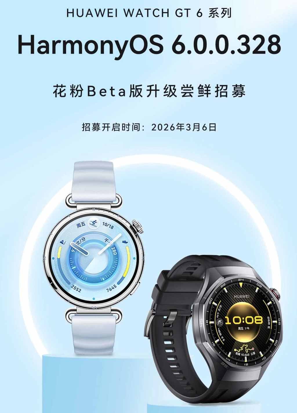 Inputs further reveal that the HarmonyOS 6.0.0.328 beta version for the Watch GT 6 series will unlock more practical features, such as new alarm clocks, enhancements for the weather, and sports applications, and more.