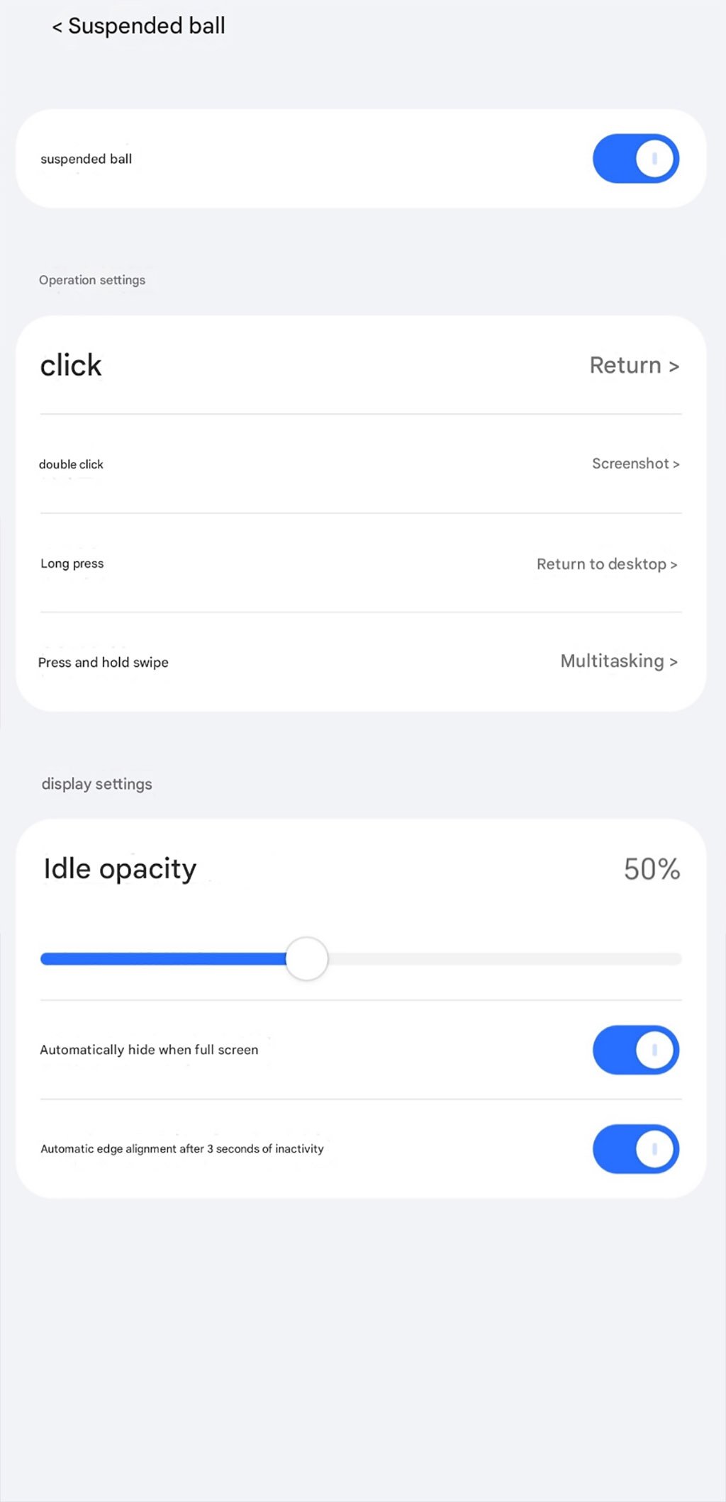 Interestingly, this upgrade not only brings a new name but also enables you to customize the floating ball click with long press or other interactive gestures. Just visit Settings > Accessibility > Floating Ball, and choose the options.