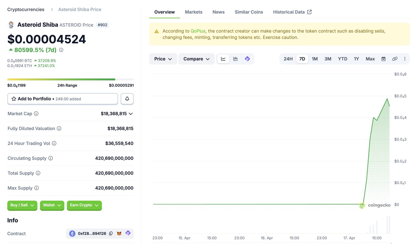 Asteroid Shiba, Coingecko Crypto Page